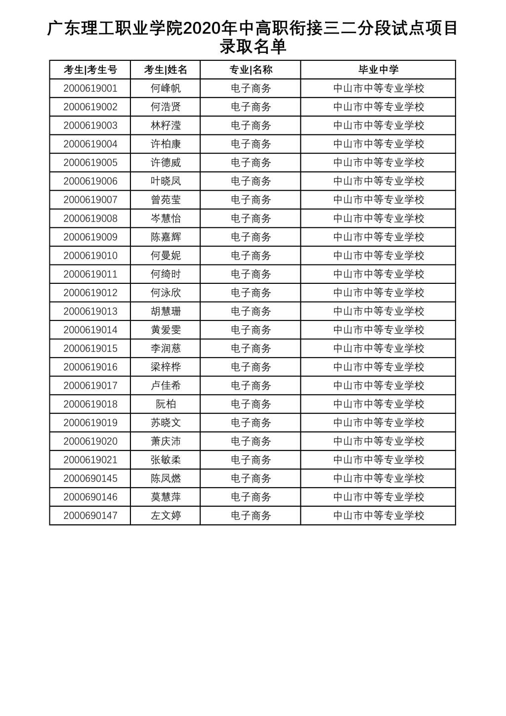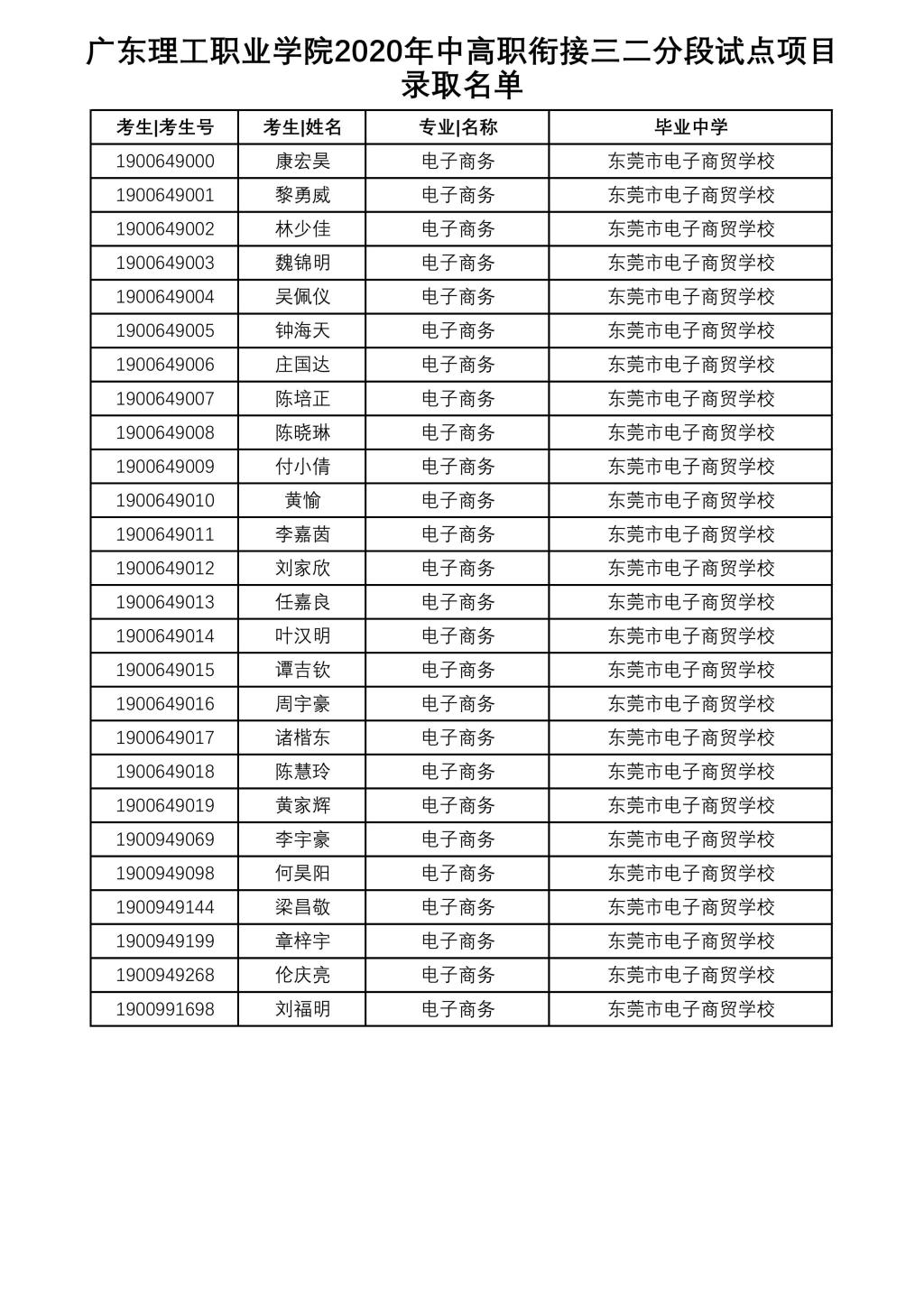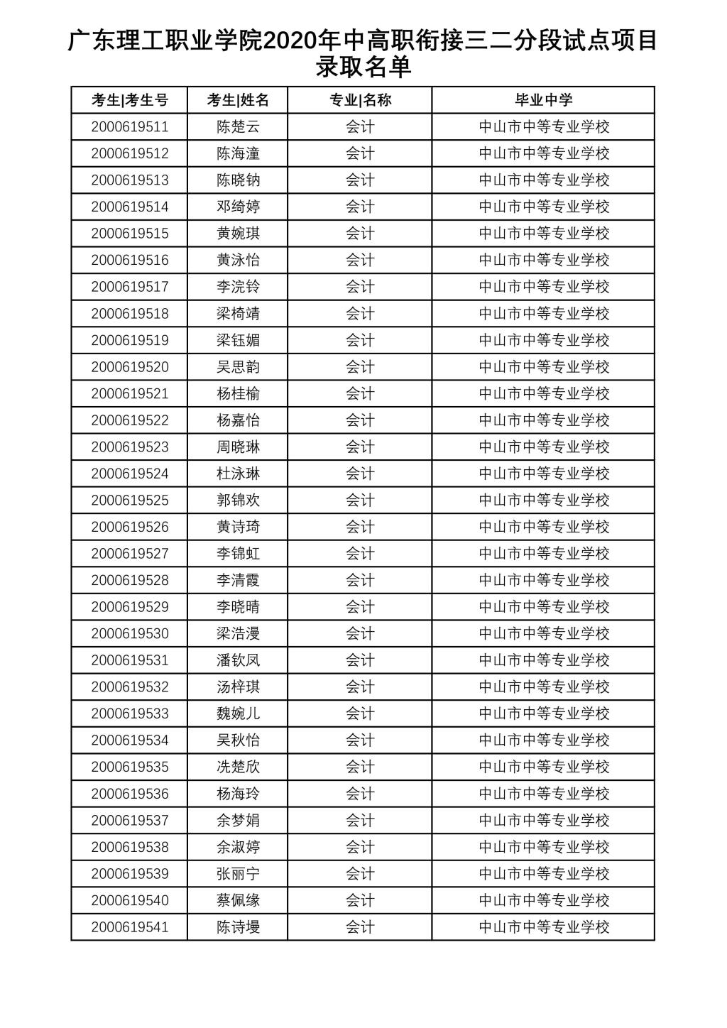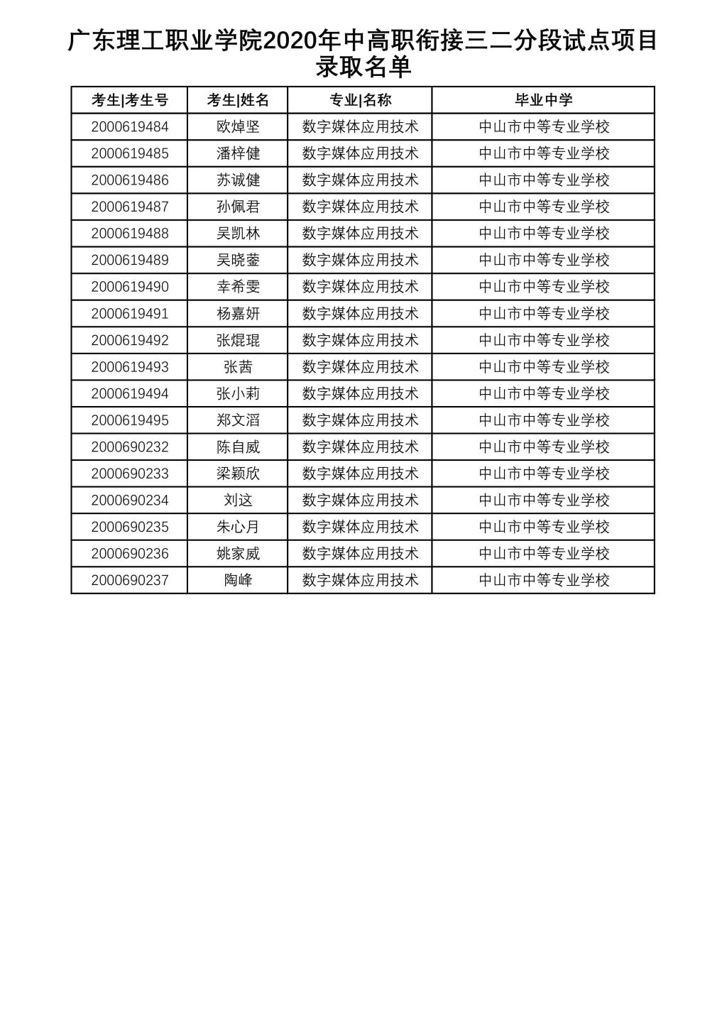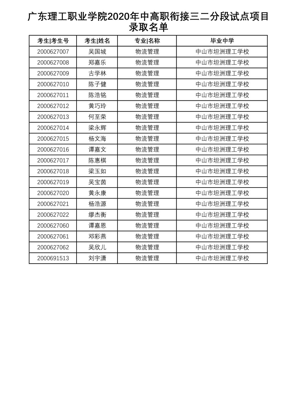 根据广东省招生委员会办公室审核通过,现将我校2020年中高职衔接三二分段录取考生名单公布如下: