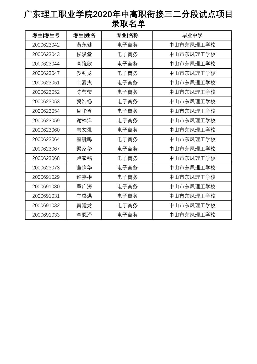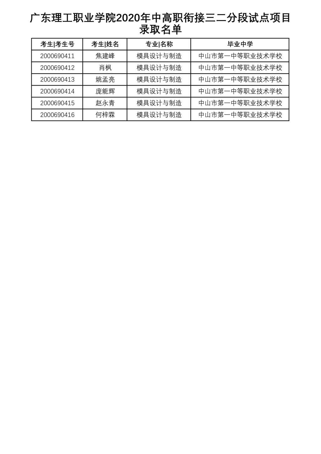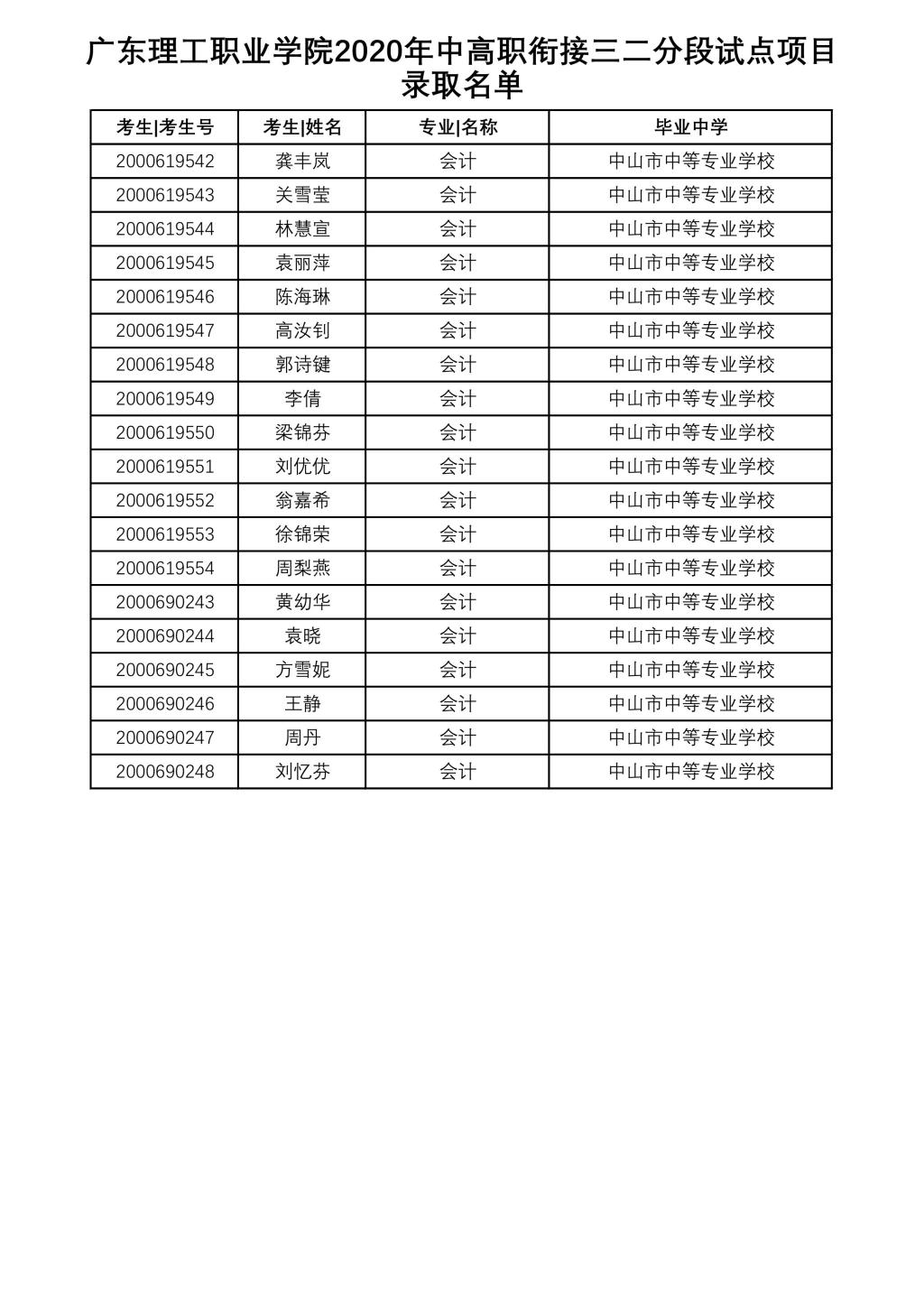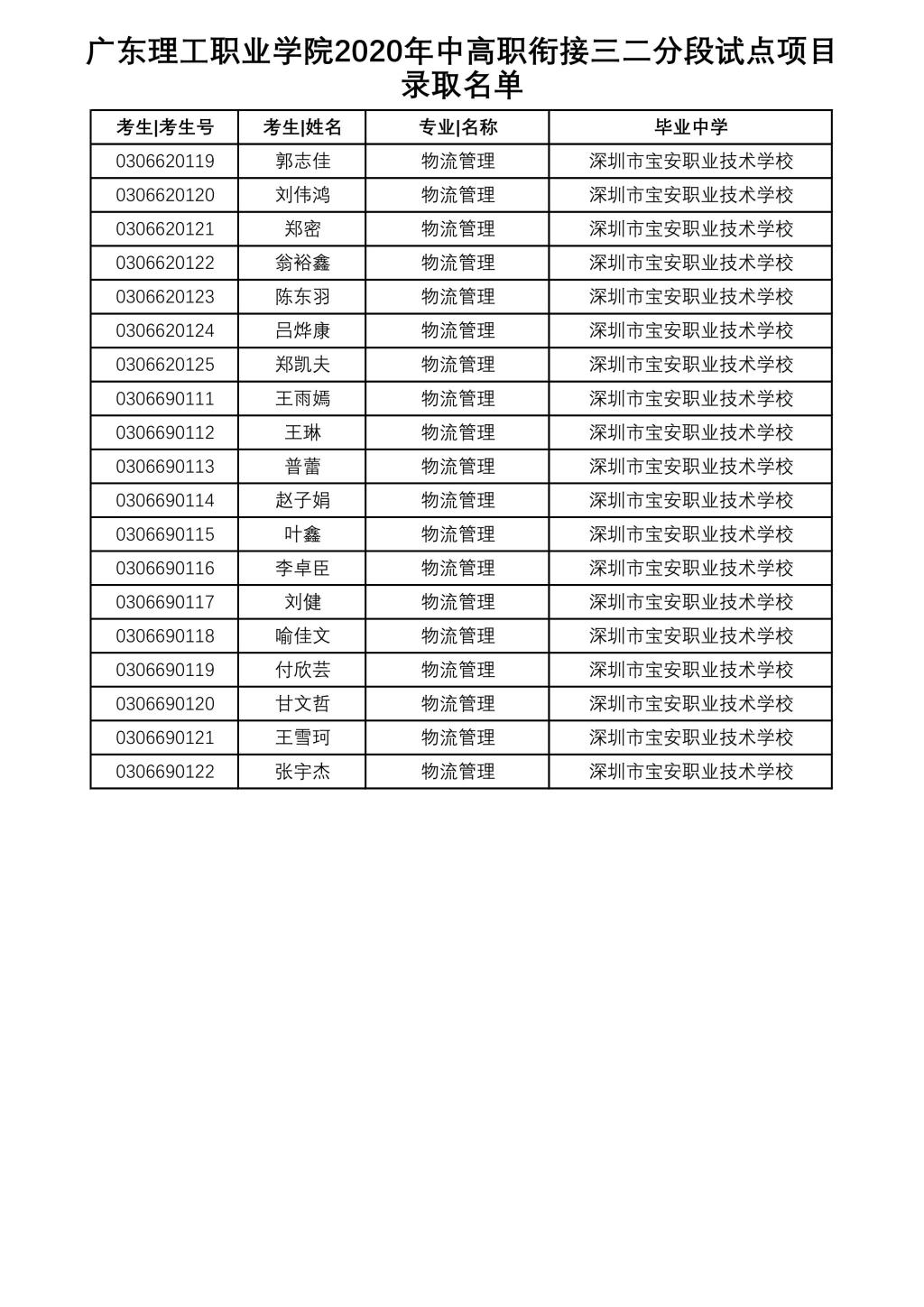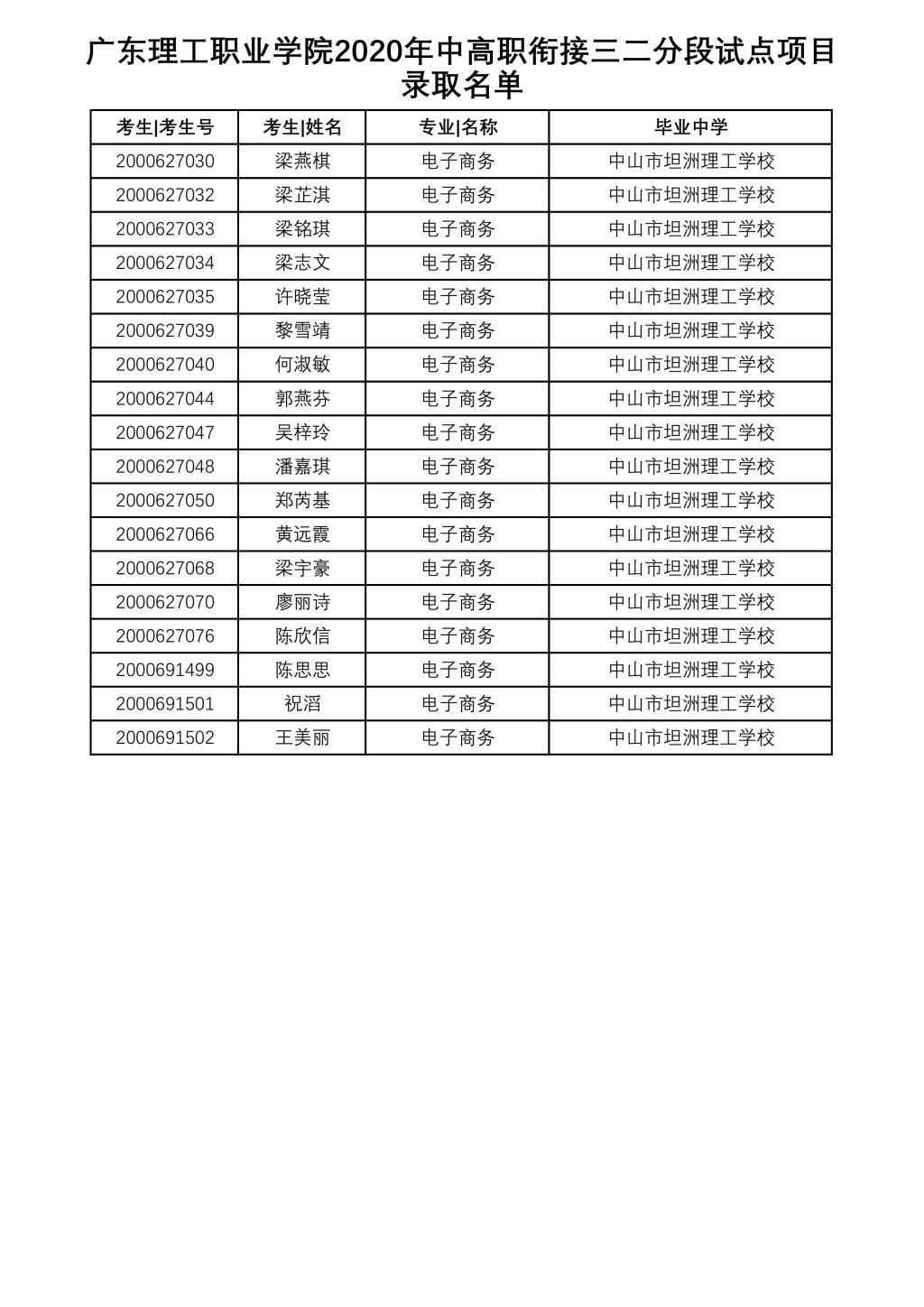 根据广东省招生委员会办公室审核通过,现将我校2020年中高职衔接三二分段录取考生名单公布如下: